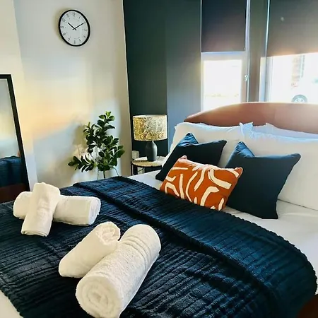 ワインフィ-ルド病院から1.5kmの所にある3のベッドル-ムのあるContractors - Modern Home Gloucester City Centre GLOUCESTERSHIREは,庭園の景色を望むル-ムを提供しています. 別荘には3のバスル-ムと器具でいっぱいの台所が付いています.